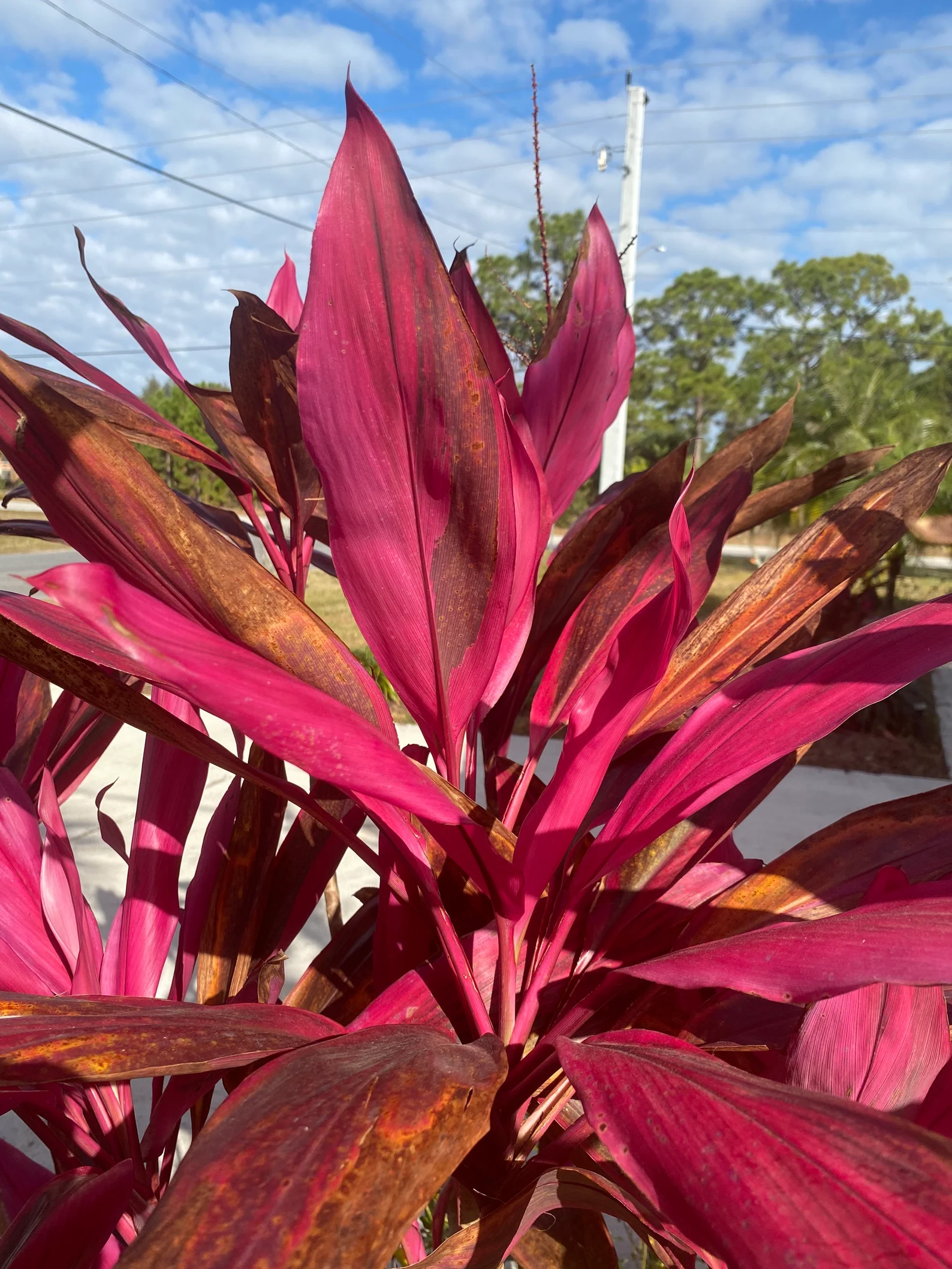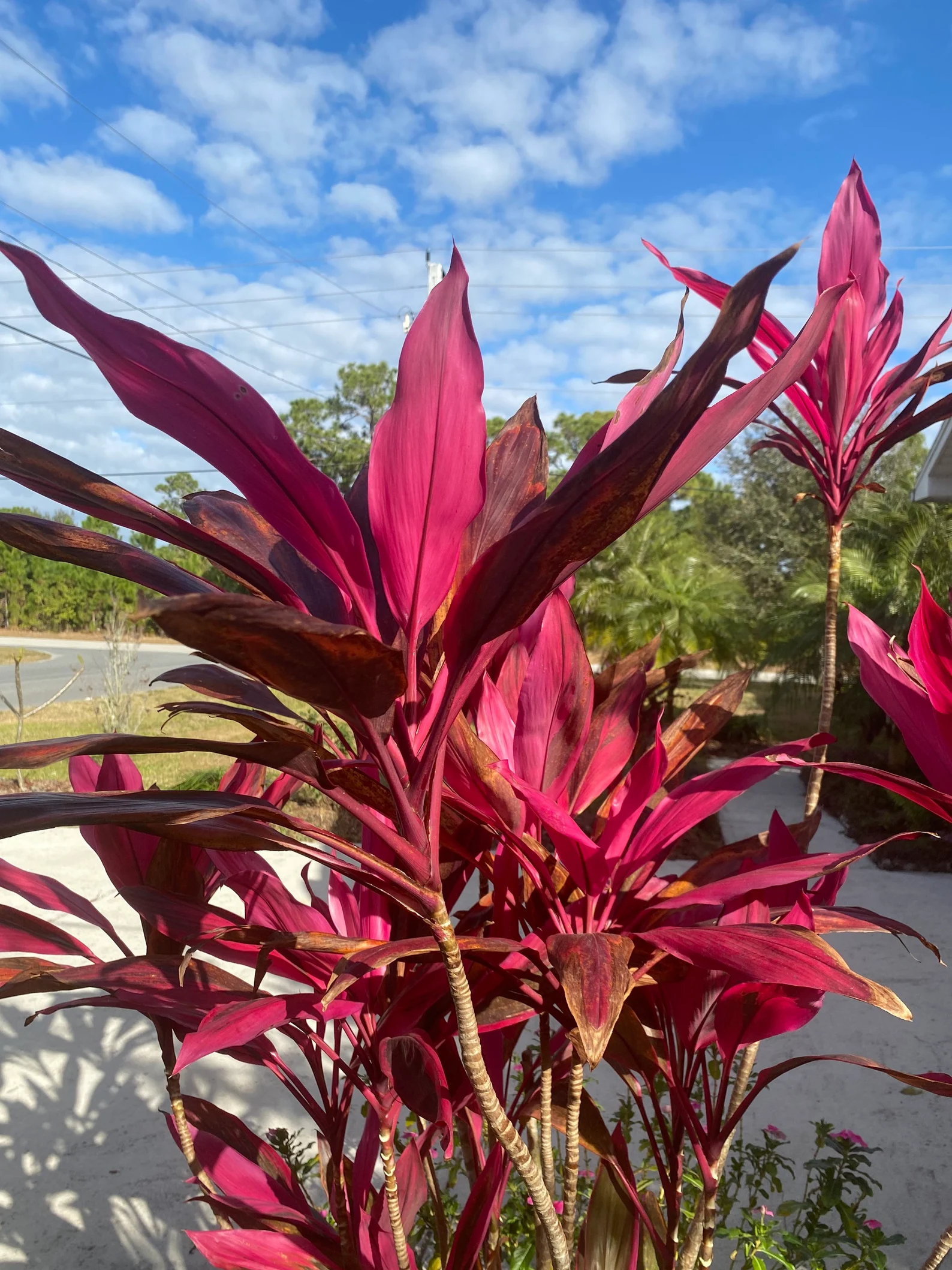 A striking ornamental with bold red, sword-like leaves, perfect for adding color to landscapes and pots